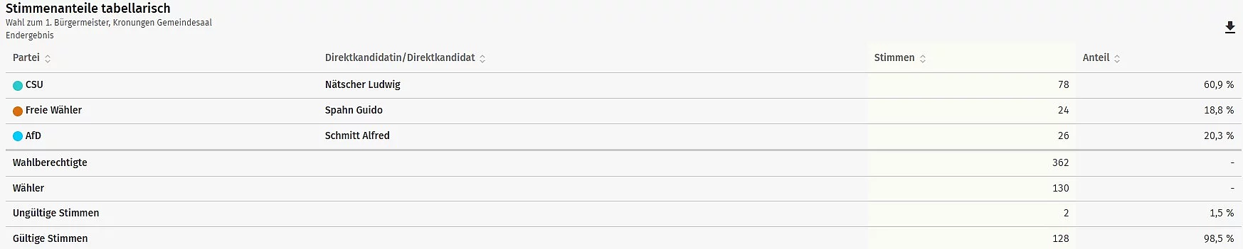 Wahl zum 1. Bürgermeister - Stimmbezirk Kronungen
