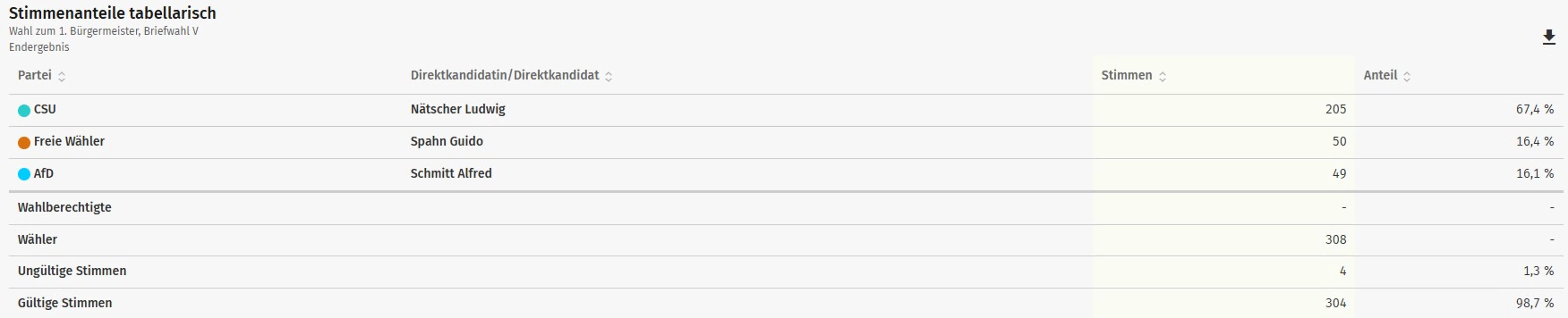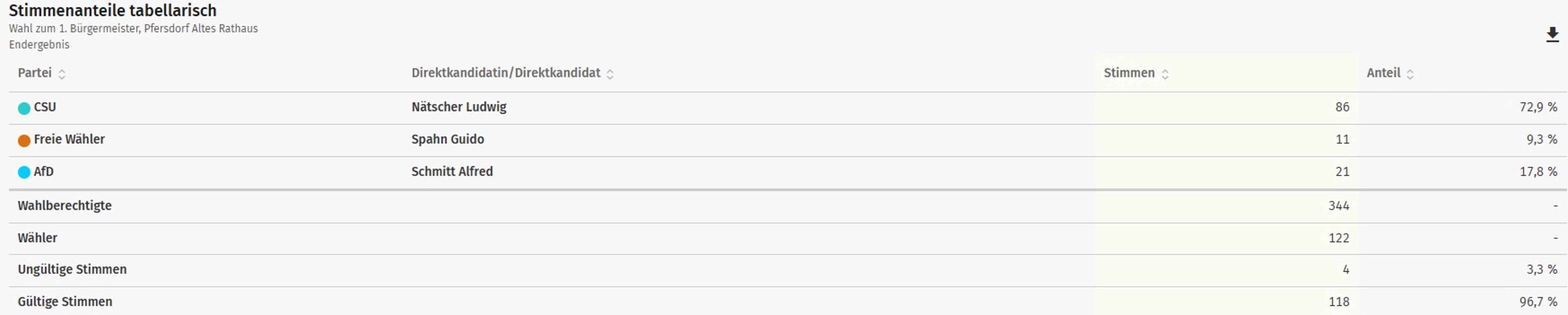 Wahl zum 1. Bürgermeister - Stimmbezirk Pfersdorf