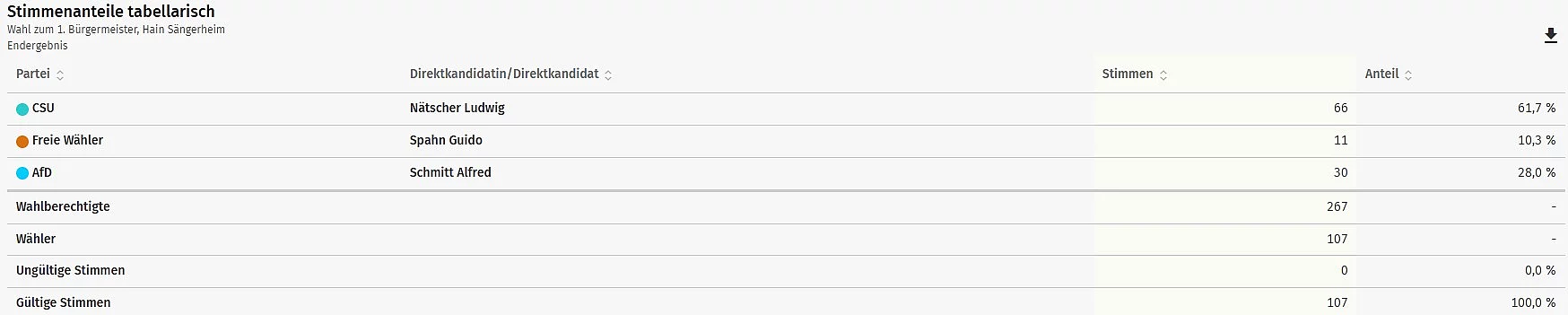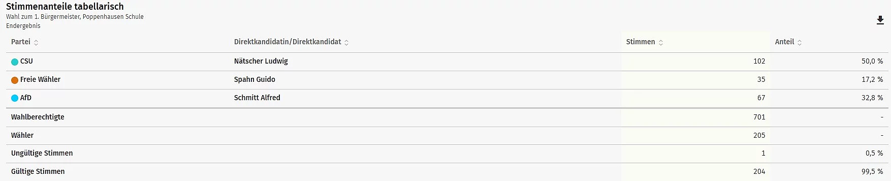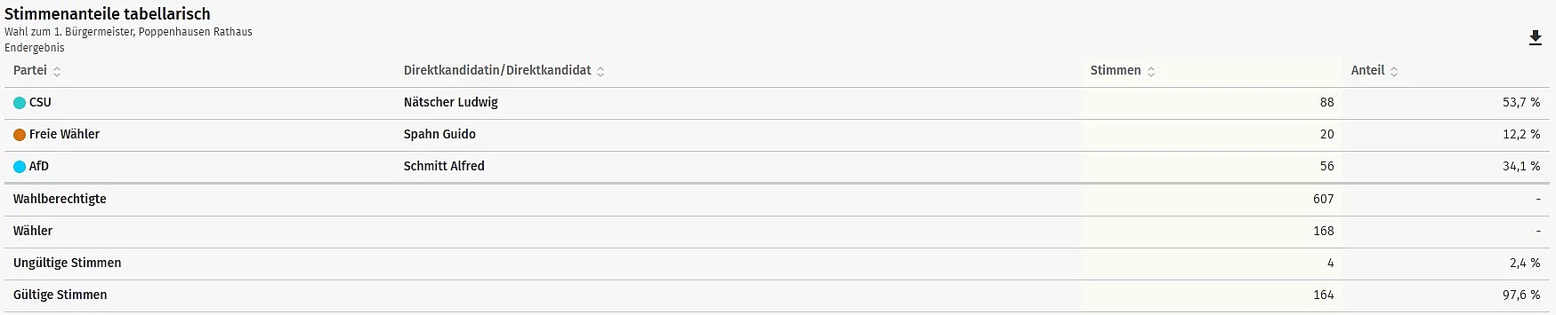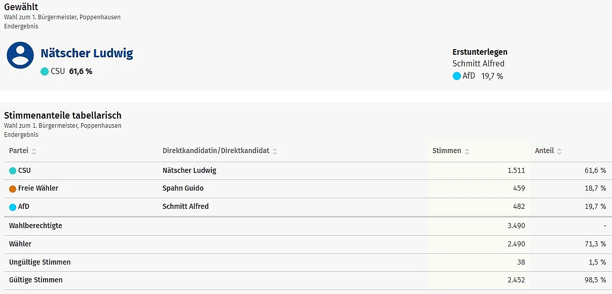 Ergebnisse der Wahl zum 1. Bürgermeister der Gemeinde Poppenhausen