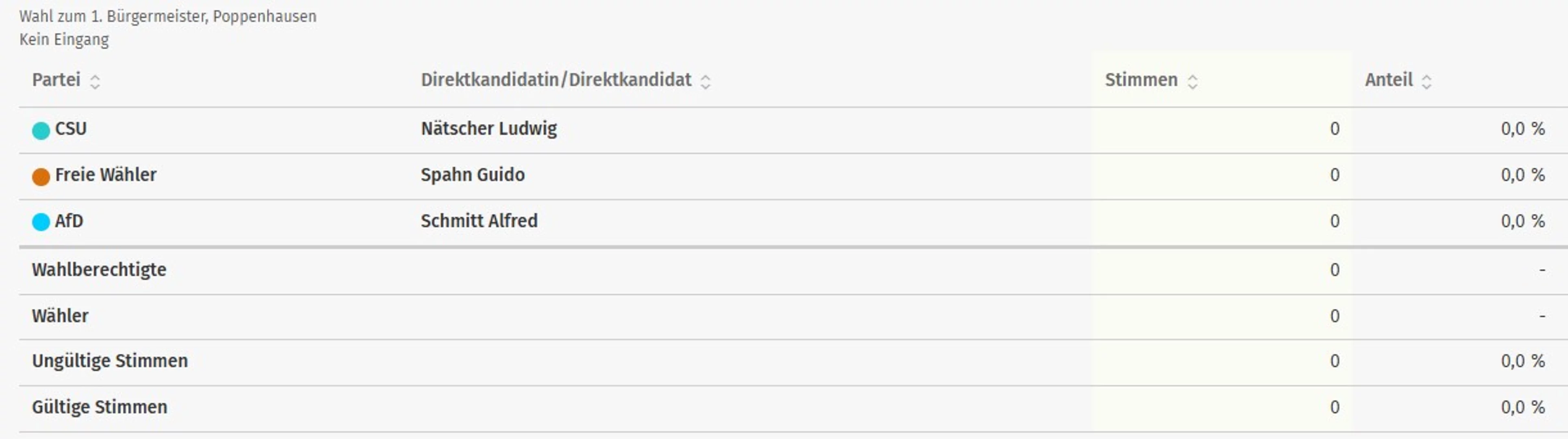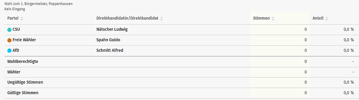 Vorläufige Ergebnisse der Wahl zum 1. Bürgermeister der Gemeinde Poppenhausen: