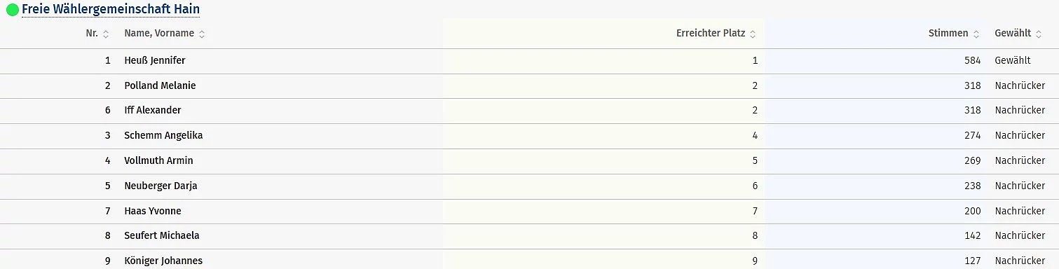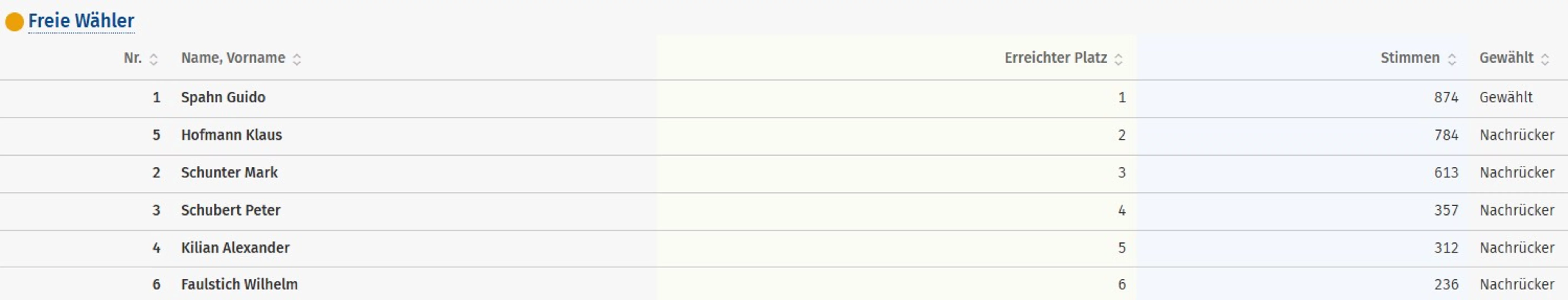 Ergebnisse aller Bewerber - Freie Wähler