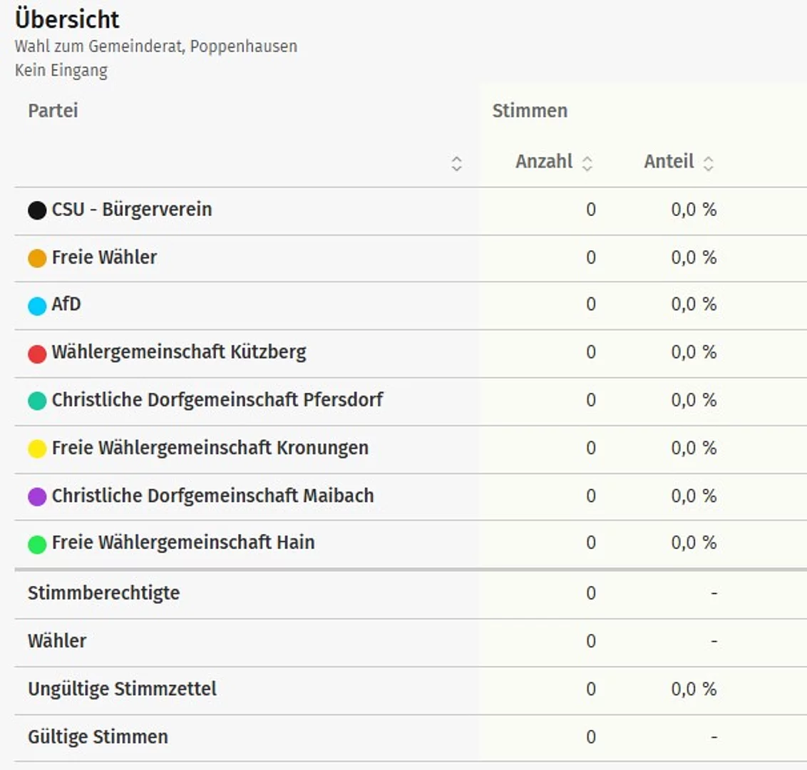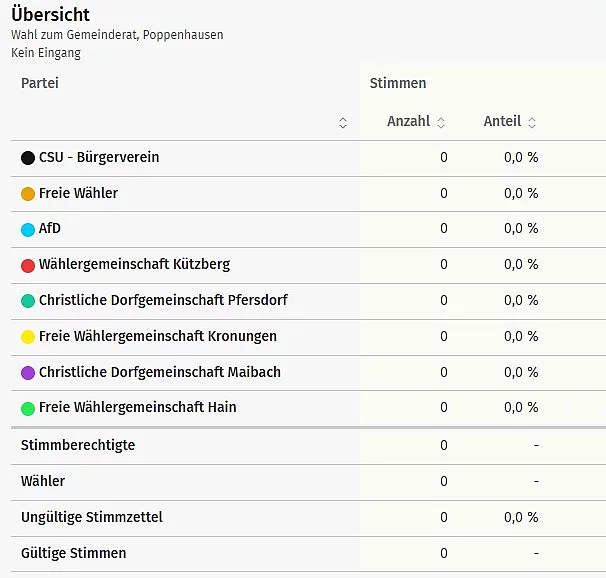 Vorläufige Ergebnisse der Wahl des Gemeinderates der Gemeinde Poppenhausen: