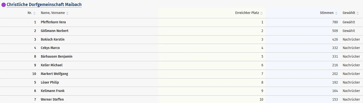 Ergebnisse aller Bewerber - Christliche Dorfgemeinschaft Maibach