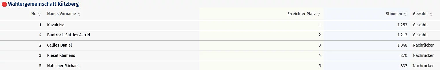 Ergebnisse aller Bewerber - Wählergemeinschaft Kützberg