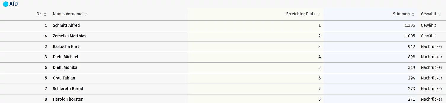 Ergebnisse aller Bewerber - AfD