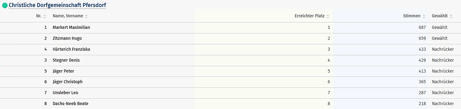 Ergebnisse aller Bewerber - Christliche Dorfgemeinschaft Pfersdorf