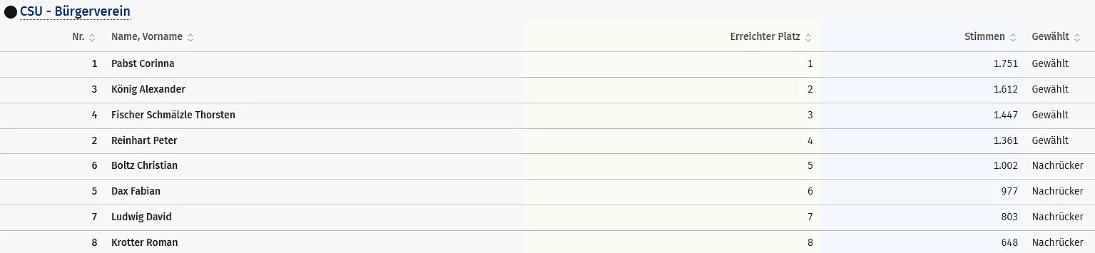 Ergebnisse aller Bewerber - CSU