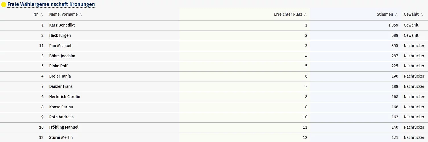 Ergebnisse aller Bewerber - Freie Wählergemeinschaft Kronungen