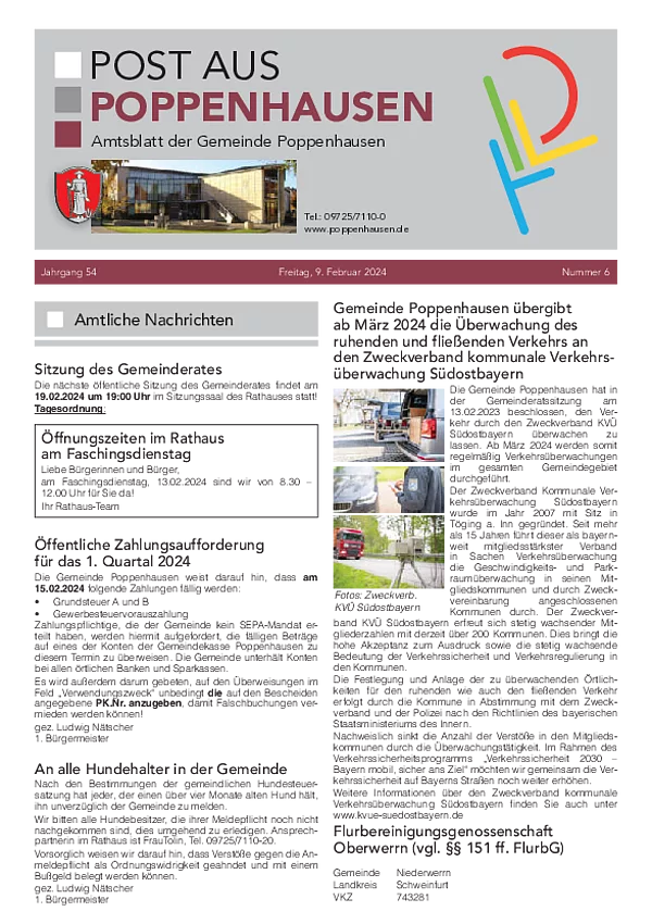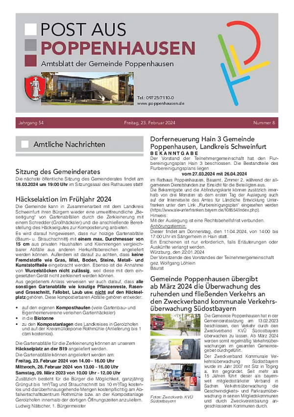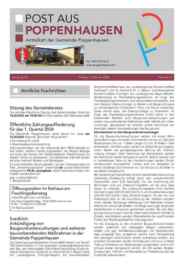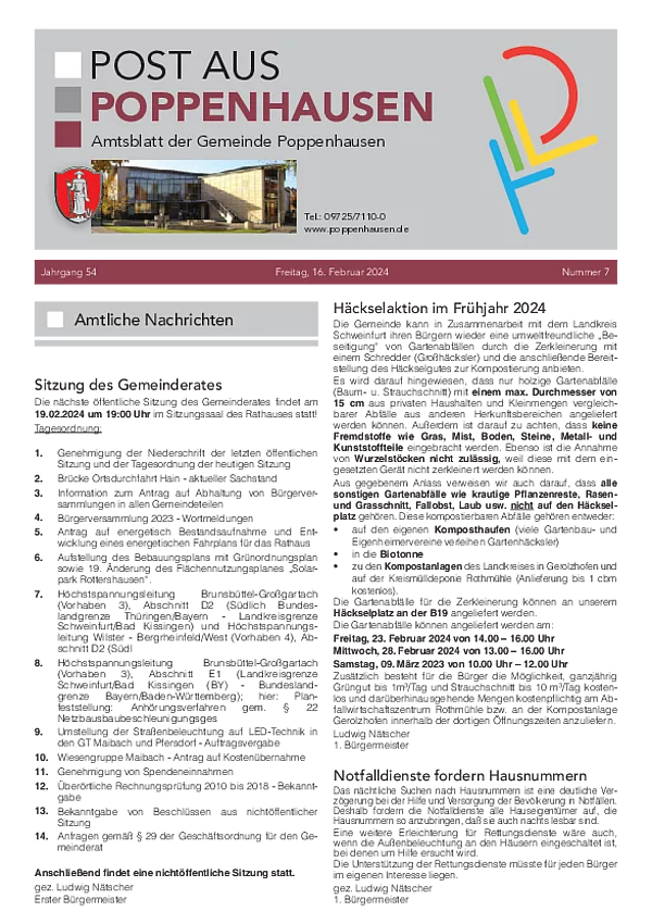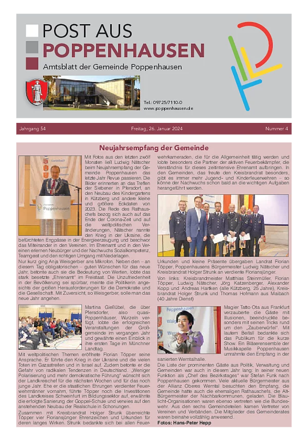 Ab 2025 erscheint die „Post aus Poppenhausen” 14-tägig in den geraden Kalenderwochen und wird immer freitags an die Haushalte aller Gemeindeteile kostenfrei verteilt.