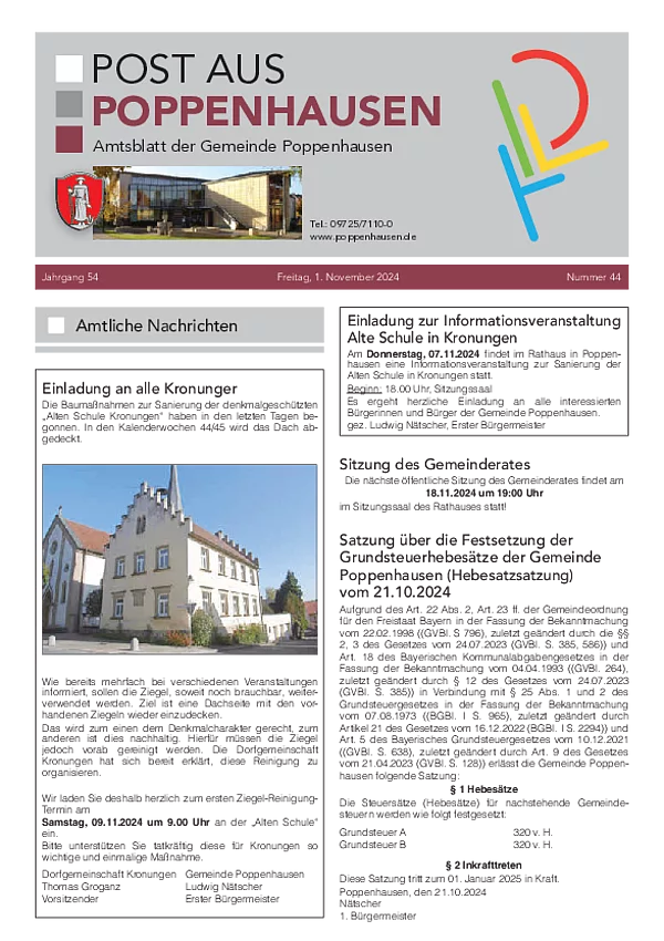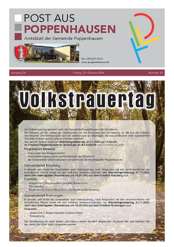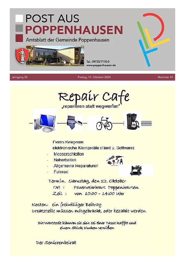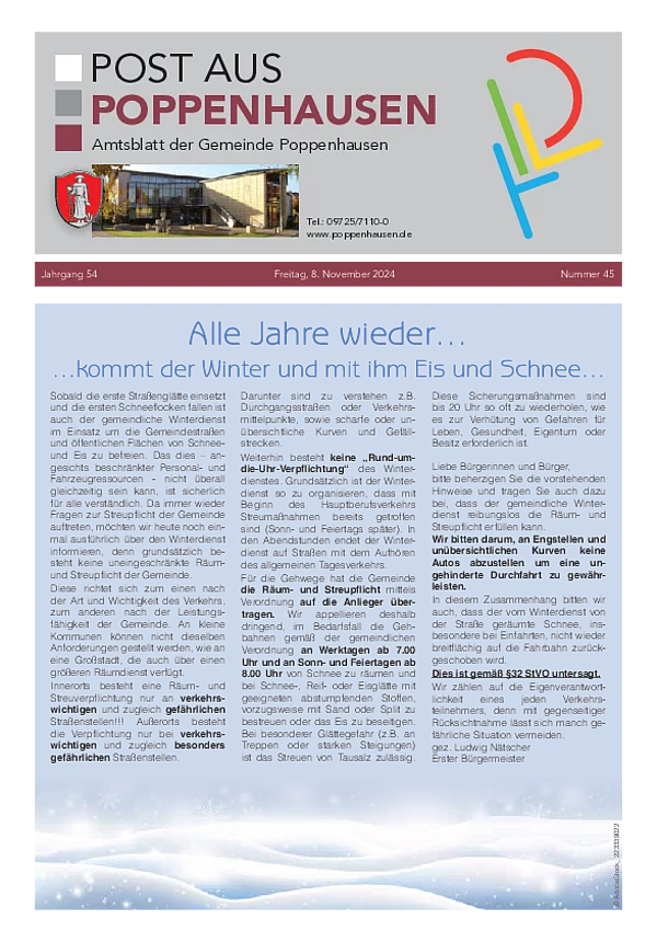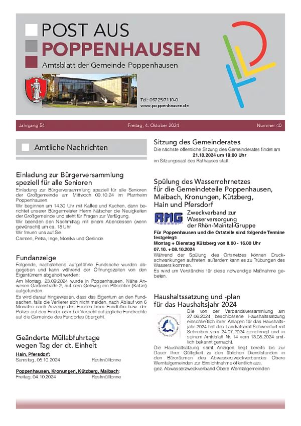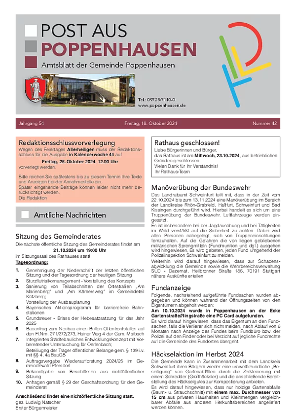 Ab 2025 erscheint die „Post aus Poppenhausen” 14-tägig in den geraden Kalenderwochen und wird immer freitags an die Haushalte aller Gemeindeteile kostenfrei verteilt.
