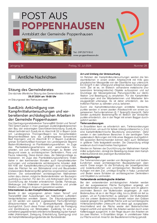 Ab 2025 erscheint die „Post aus Poppenhausen” 14-tägig in den geraden Kalenderwochen und wird immer freitags an die Haushalte aller Gemeindeteile kostenfrei verteilt.