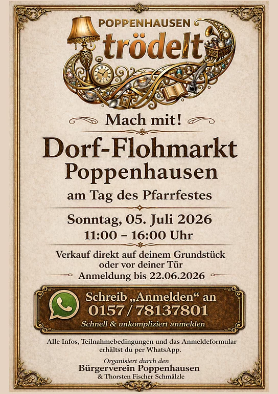 Einladung zum Dorf-Flohmarkt in Poppenhausen am Tag des Pfarrfestes