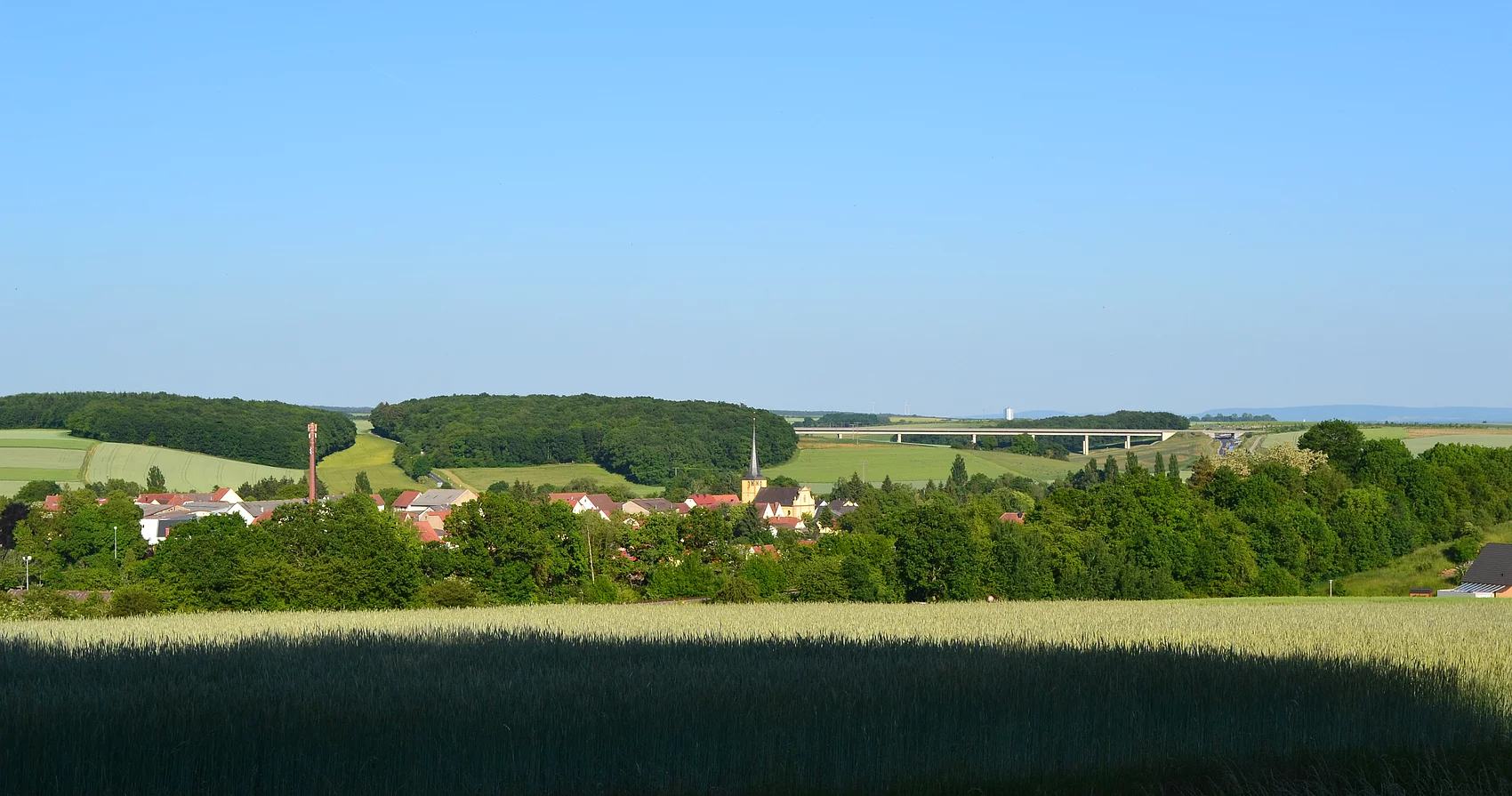Urkundlich wird Poppenhausen verhältnismäßig spät und zwar erst am 08. Dezember 1223 belegt, als ein gewisser Friedrich von Poppenhausen als Zeuge in einer Urkunde erscheint. Poppenhausen gehört zum hennebergischen, seit 1353 hochstiftischen Amt und Centgericht Ebenhausen.